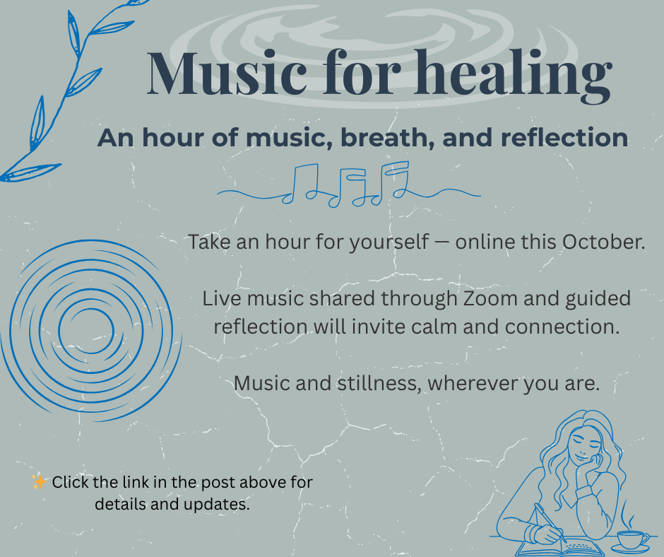 I’m trying something new — a gentle, one-hour online session combining live music through Zoom, guided reflection, and journaling. It’s an experiment close to my heart, and I’d love to share this space with you.